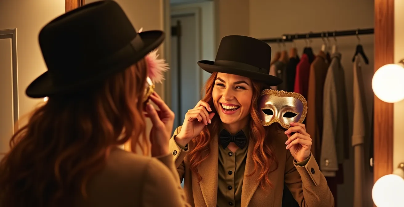 Et si la véritable clé n’était pas dans le costume lui-même, mais dans la manière de l’habiter ? En tant que scénariste, je ne vois pas un déguisement comme un simple vêtement, mais comme la première ligne d’un script. C’est un outil pour créer un personnage. Le secret pour vaincre la timidité n’est pas de *porter* une tenue, mais d’*incarner* un rôle, même minimaliste. Ce n’est plus vous qui êtes exposé, mais le personnage que vous jouez. C’est un masque psychologique qui vous donne la permission d’explorer, de séduire et de vous amuser différemment.